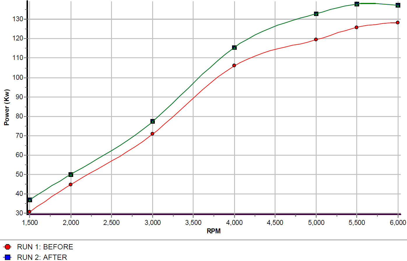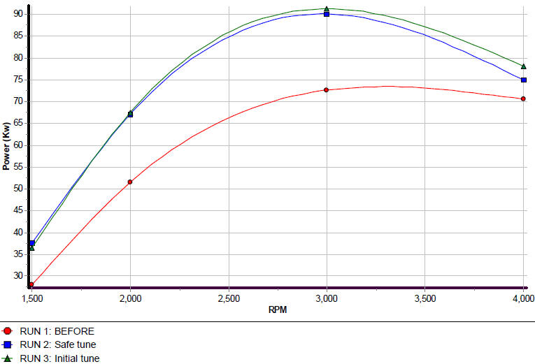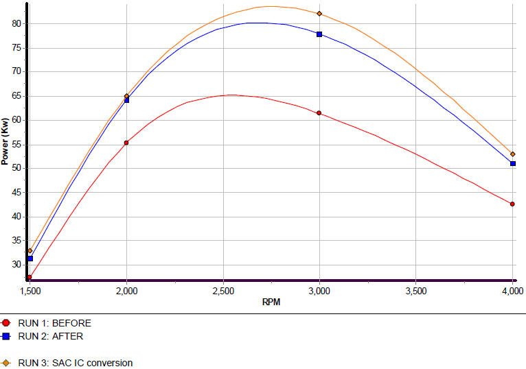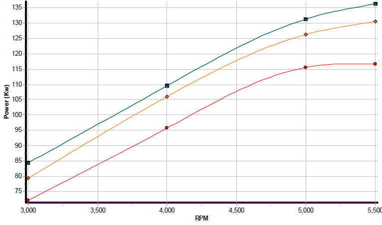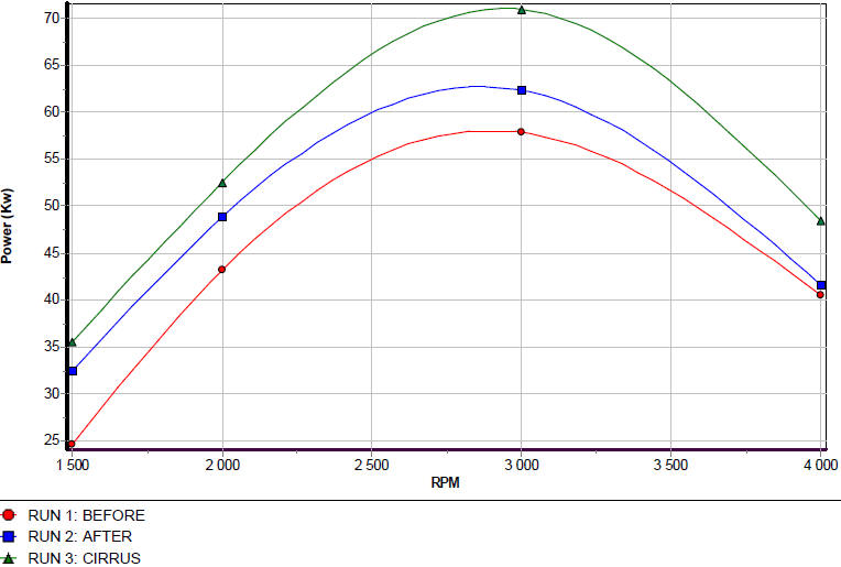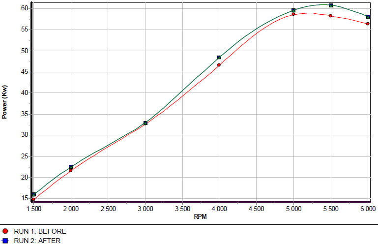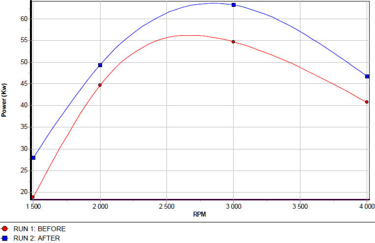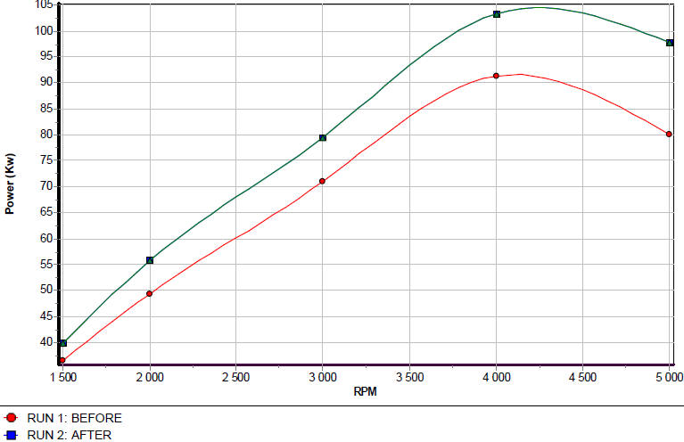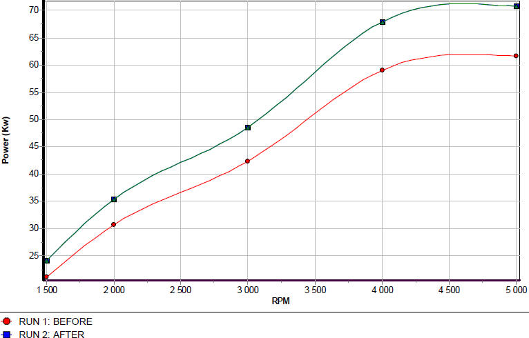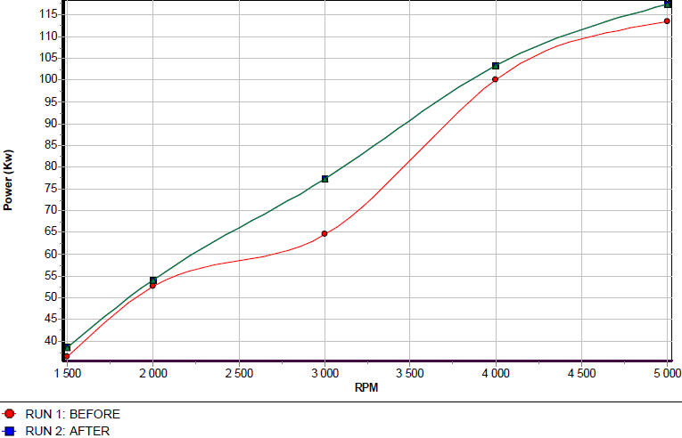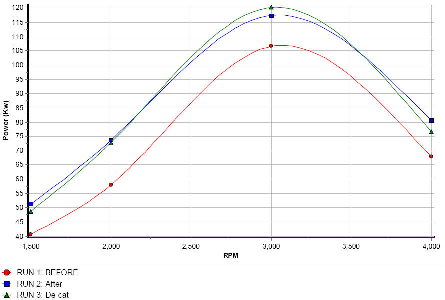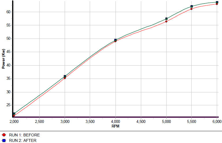 I would say it easily gained 20 Kw over a stock vehicle. Remember