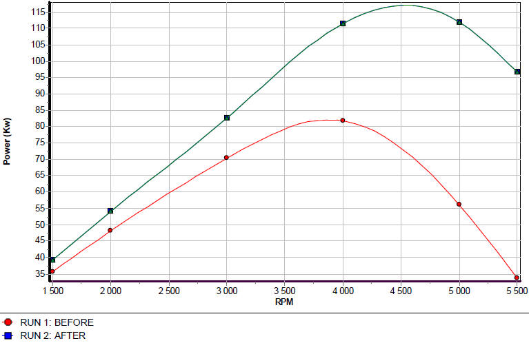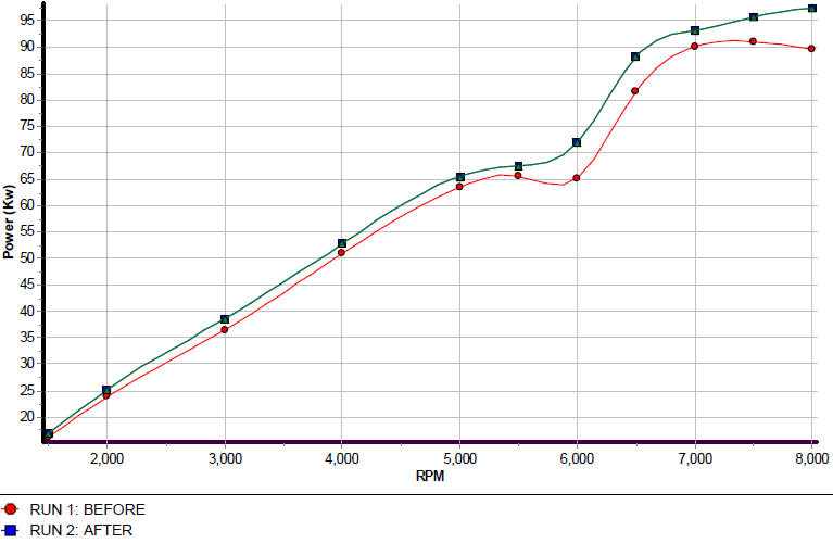 This shows the healthy increase on the 1.6 run-X once we also do the exhaust