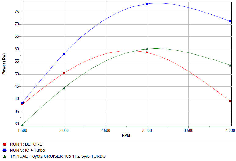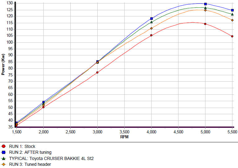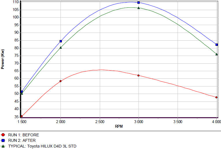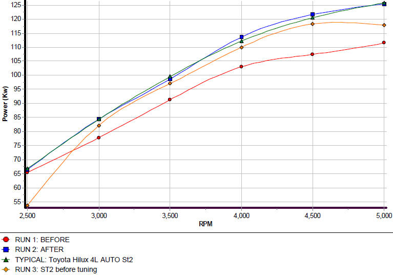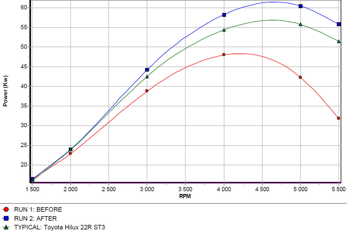 This 22R Hilux had a full-house conversion done, showing a massive performance increase with no lost torque. Our speciality :)