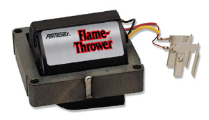 PerTronix announces the availability of their Flame-ThrowerŪ replacement HEI 50,000-volt coils for most GM applications using either the red/white or red/yellow wire leads. According to PerTronix, their coils feature an optimized windings design to maximize spark gap current and available voltage and when teamed with a Flame-ThrowerŪ module delivers twice the energy across the spark gap (during a one millisecond burn time) compared to the OEM HEI. |