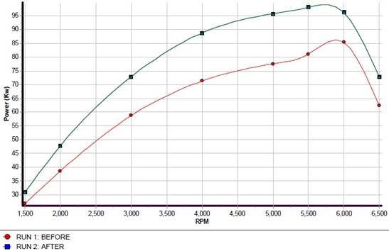 This pipe(on top) just replaces the stock downpipe with cat(bottom) and makes more power than a safe software upgrade.