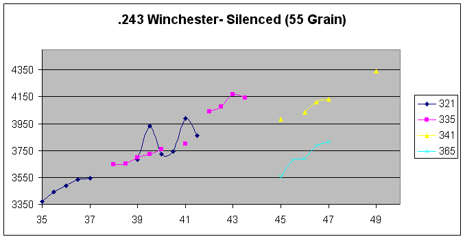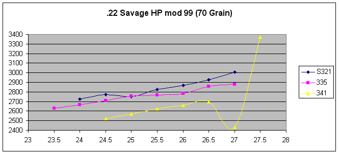 What I then do, is make Batches of 5 round loaded down from my Max velocity in increments of .5 grains. This gets fired over a Bench rest, to see what load gives me the best accuracy. For those of you who are interested in Statistics, here is a Sampling of some common calibers (I take NO responsibility, if you want to duplicate these results):