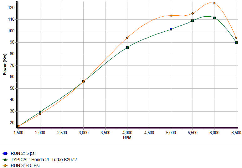 Honda 2L Turbo K20Z2- We normally do not tune turbo conversions unless the client is extremely pleasant to work with. You will find more graphs on Turbo tunes though Clients comment: Testing went fine. Much more responsive.