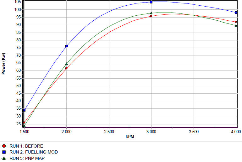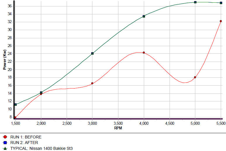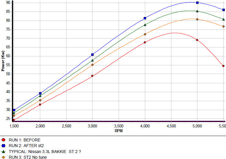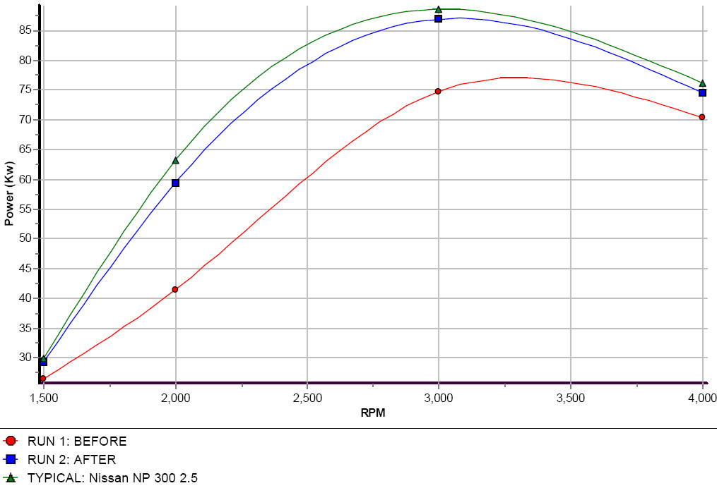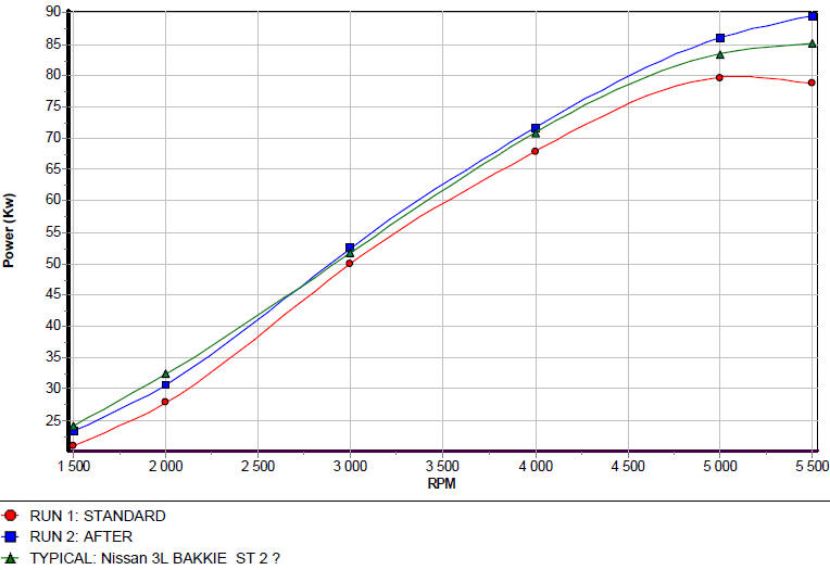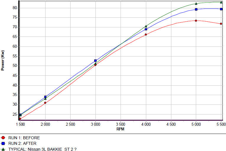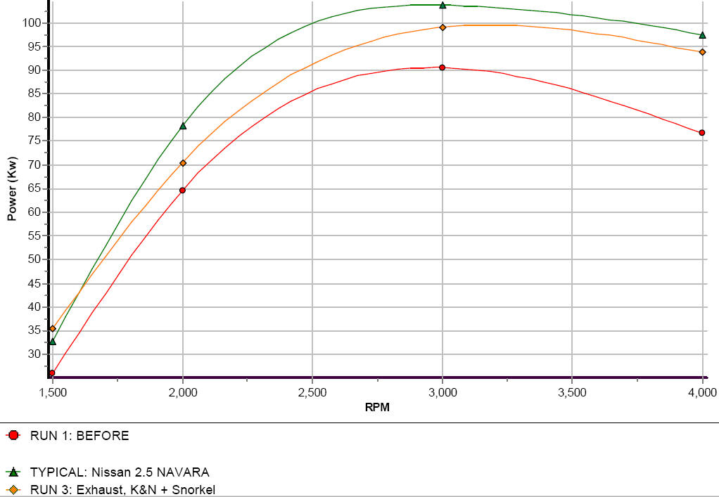 Navara 2.5 Diesel showing a healthy increase after tuning the Plug 'n Play